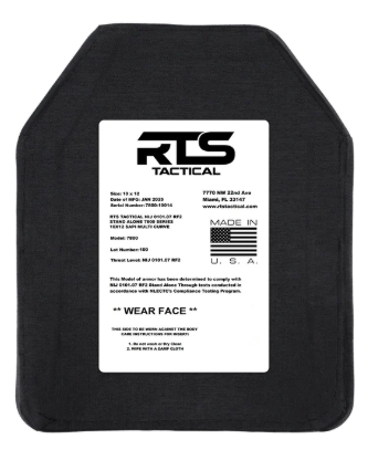 RTS Tactical NIJ 07 RF2 Stand Alone 7800 Series 10x12 SAPI Multi Curve